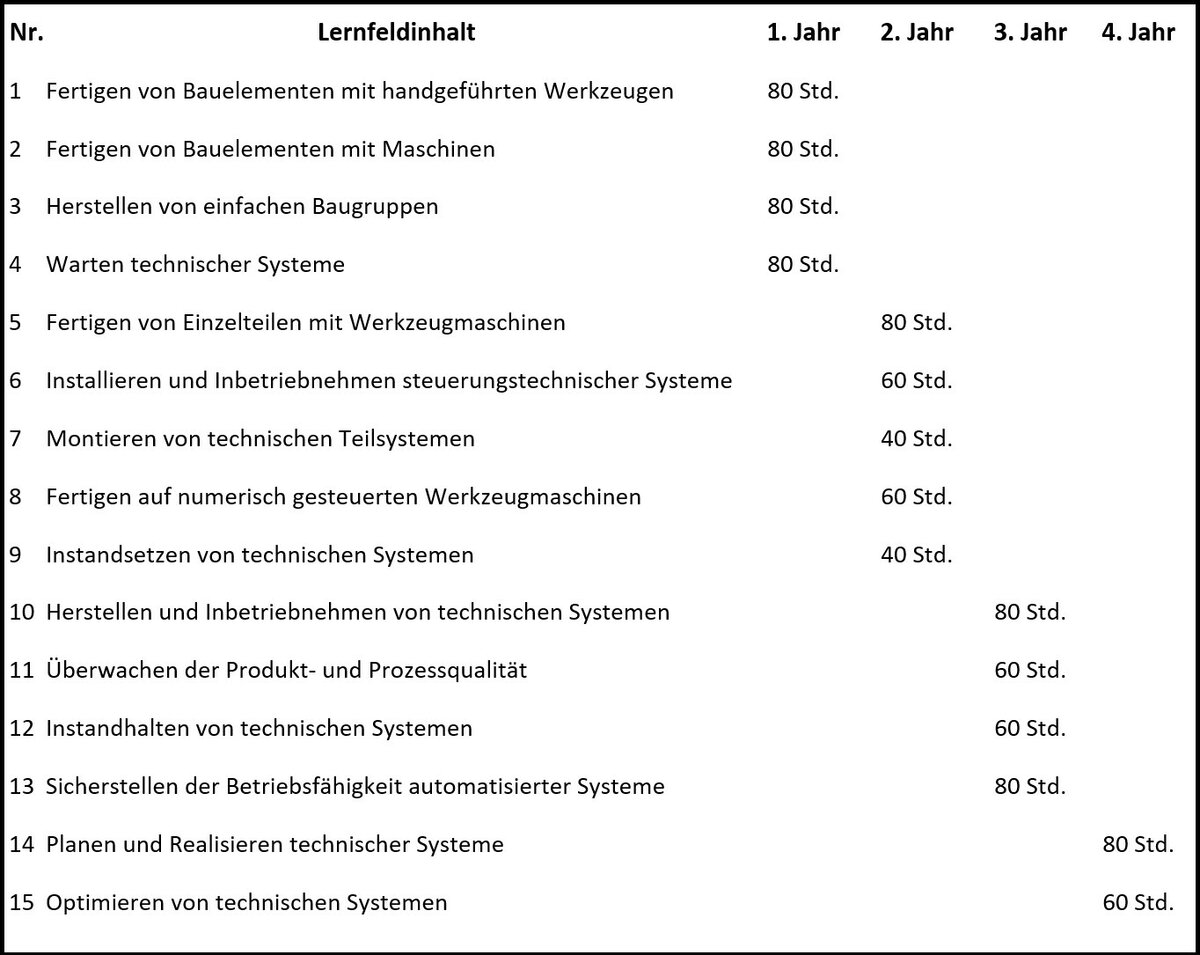 Eine Anrechnung der erfolgreich abgeschlossenen Berufsausbildung zum / zur Maschinen und Anlagenführer/in, kann auf die Berufsausbildungen der industriellen Metallberufe erfolgen.